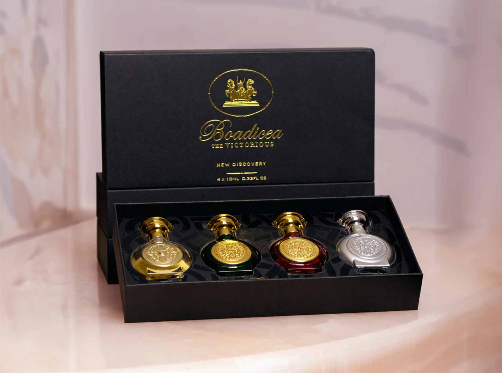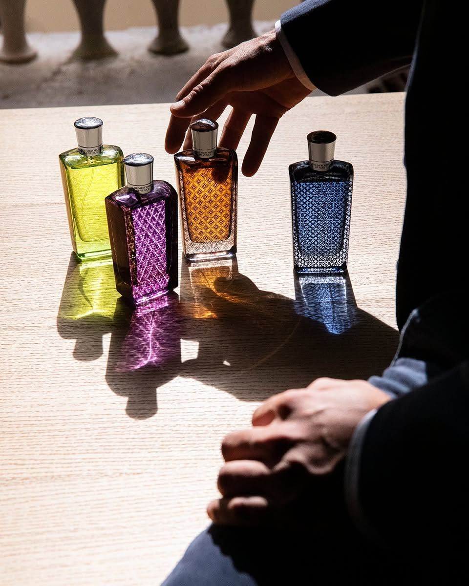 Cet ensemble composé d'une eau de parfum et d'une eau de parfum concentrée s'inspire des échanges commerciaux et des voyages de l'ancienne noblesse vénitienne. Chaque parfum est contenu dans un flacon en verre précieux qui s'inspire du style et des couleurs des tissus traditionnels vénitiens.